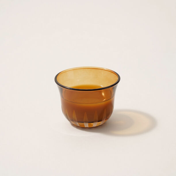 Arabic coffee cups by Dallaty in warm brown glass with hand finished texture. Each cup holds 60ml simple, light, and easy to serve as part of your daily or guest set.