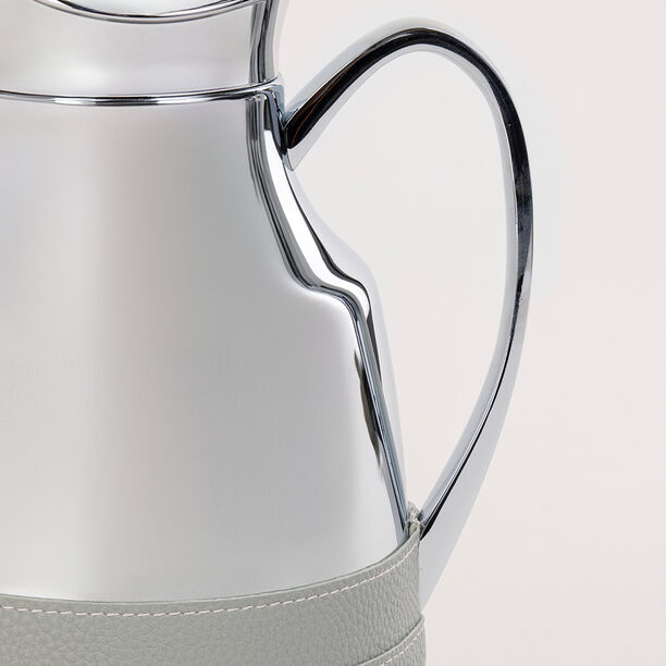 Enjoy your tea & coffee with Dallaty pumpk stainless steel vacuum flask in a stunning navy grey leather cover. Crafted from high quality steel. This 1 liter flask offers exceptional functionality for both hot and cold drinks. Its sleek design with gold and chrome accents, makes it a standout accessory. This flask is a must whether you're on an outdoor adventure, or everyday use.