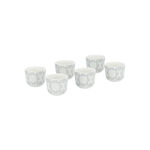 Enjoy your beverages with Dallaty set of Tea and coffee cups, comprising 18 pieces. This collection includes 6 charming white porcelain coffee cups with grey prints, 6 delightful transparent glass tea cups, and 6 perfectly round white and grey porcelain saucers. All crafted with precision, each piece adds a touch of elegance to your sipping experience.
