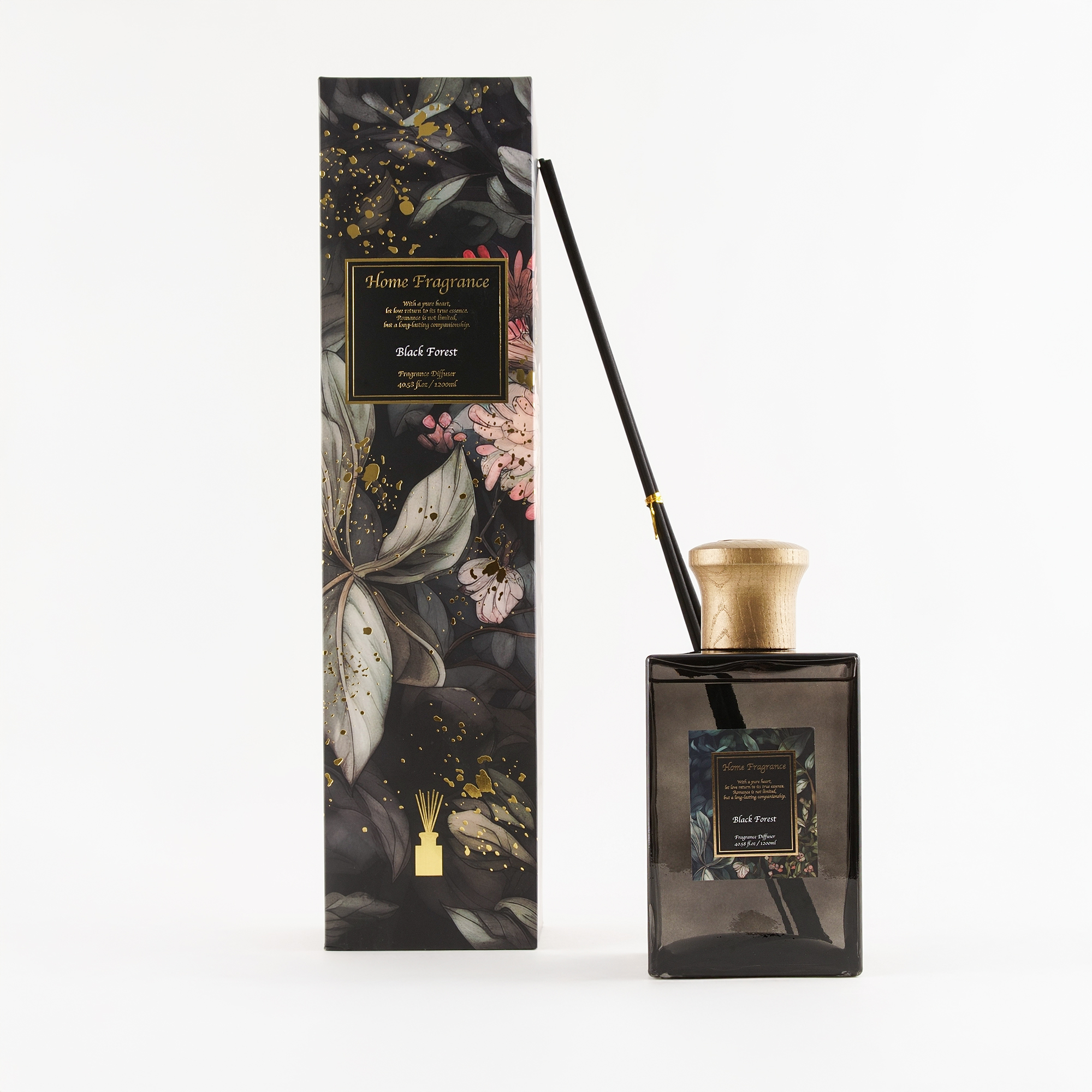 Homez flowery diffuser 1200ml black forest is a reed diffuser designed to fill your space with a warm and deep fragrance that blends floral notes with elegant woody undertones. It provides strong, long lasting, and consistent scent diffusion, creating an atmosphere of calm and luxury. Perfect for large areas such as living rooms and offices.