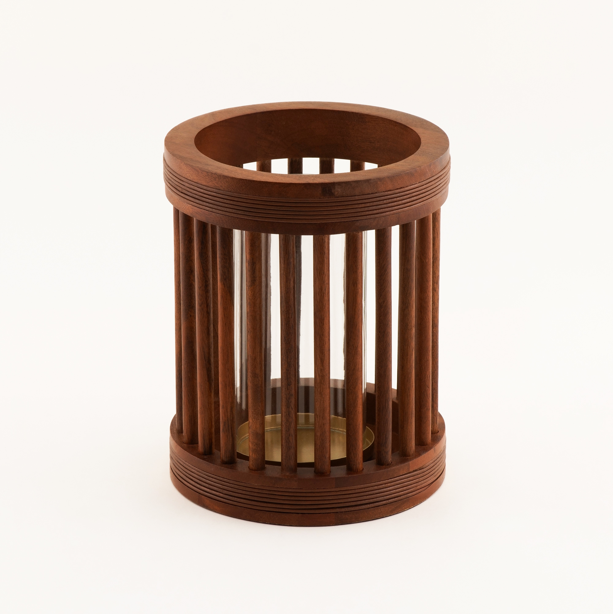 Homez hurricane candle holder natural wood 21.5*21.5*26cm