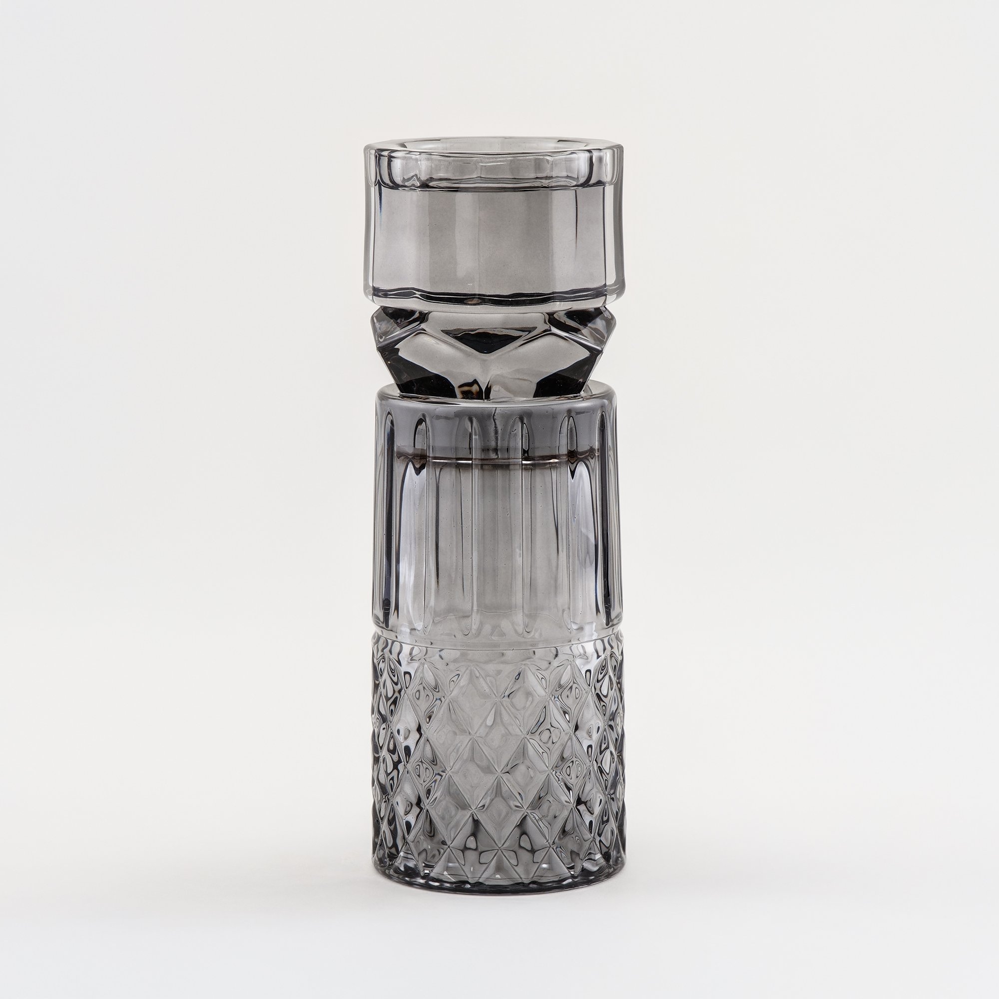 "Homez Light Grey Diamond Glass Candle Holder 8.9*8.9*27.4 cm