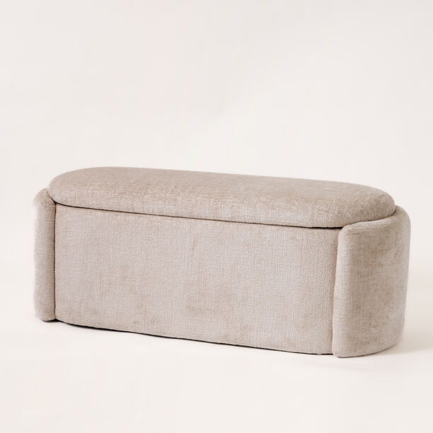 Homez storage bench with dimensions of 121*41.5*46 cm, featuring a practical and stylish design. Crafted in a modern white color, it provides additional storage space while maintaining an elegant look. Ideal for use in living rooms or entryways.