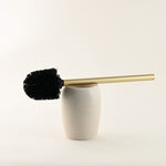 An Elegant Toilet Brush Holder Featuring A Stainless Steel Pole In Gold. It Includes A Bristle Brush For Effective Cleaning And A Sleek Design To Match Any Modern Bathroom.