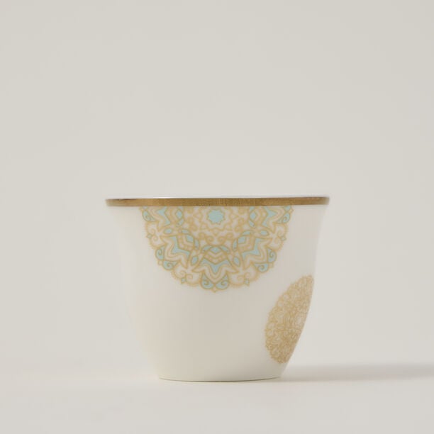The geometric circular print in luxurious golden color adds luxury to this Arabic coffee set from La Mesa. Designed with golden stripes on the edges and consists of 12 Arabic coffee cups with a capacity of 90 ml.