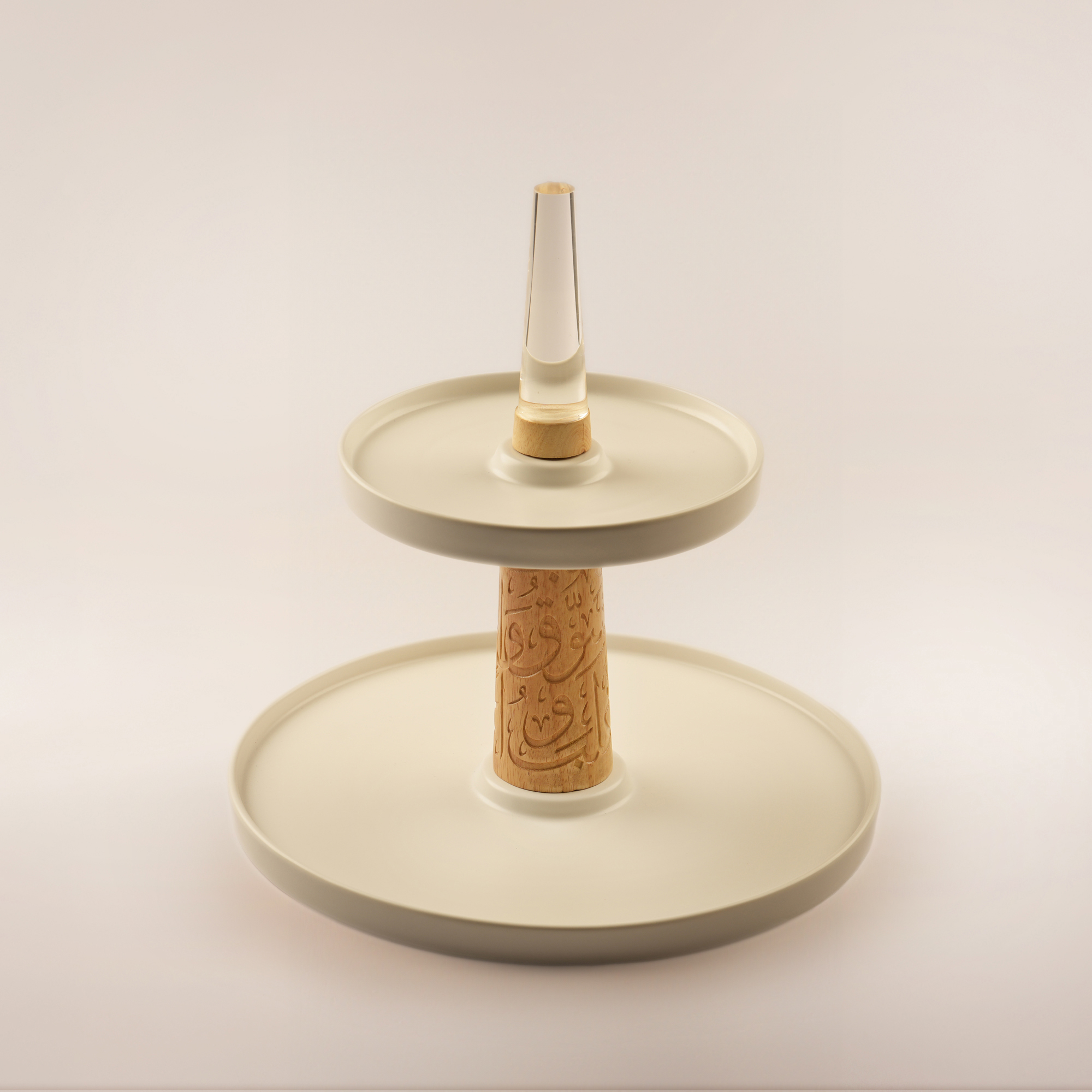 Handcrafted With Care, Enjoy Your Table Setting With The La Mesa 2 Tier Cake Stand. Crafted From Natural Porcelain Plates Of 30Cm And 19Cm, And An Engraved Wooden And Acrylic Stand, This Piece Is Perfect For Serving A Variety Of Treats. Dimensions: 30*19*38.5Cm.