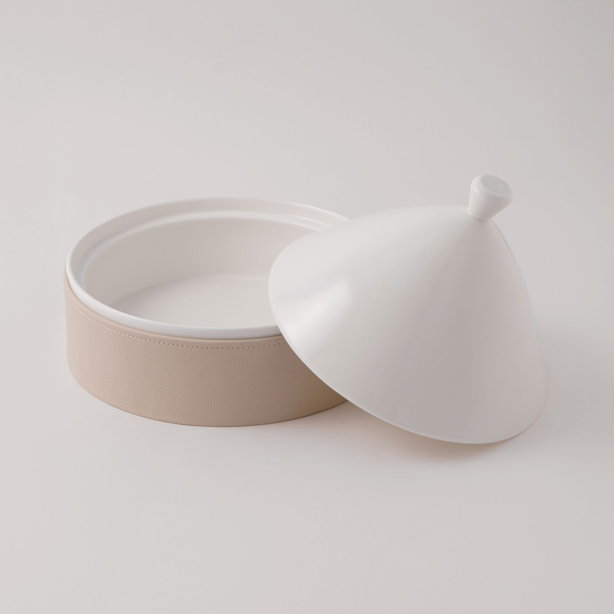 La Mesa Porcelain Tagine With Plain Beige Leather Coat, White, 7"