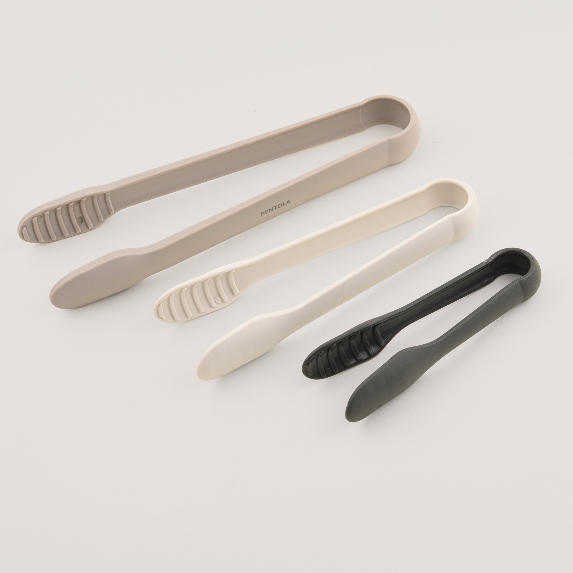 Set Includes 1 tong 6'': charcoal, 1 tong 8'': off white, 1 tong 10'': grey
