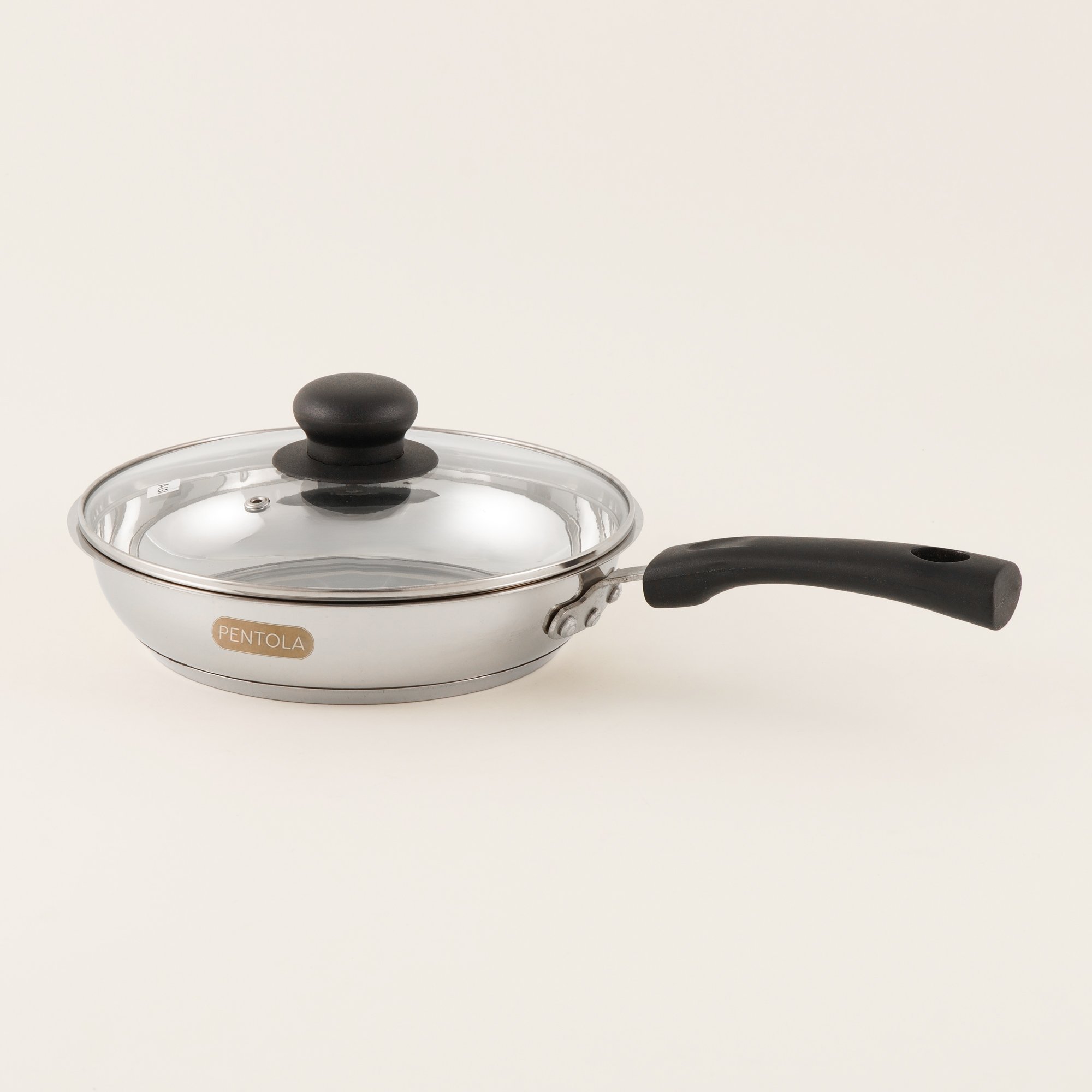 Pentola 24cm stainless steel frypan with lid offers a larger cooking surface ideal for sautéing and preparing a wide variety of dishes. Built with a scratch resistant polished interior and efficient heat control, it ensures consistent cooking results. Induction friendly and suitable for everyday use.