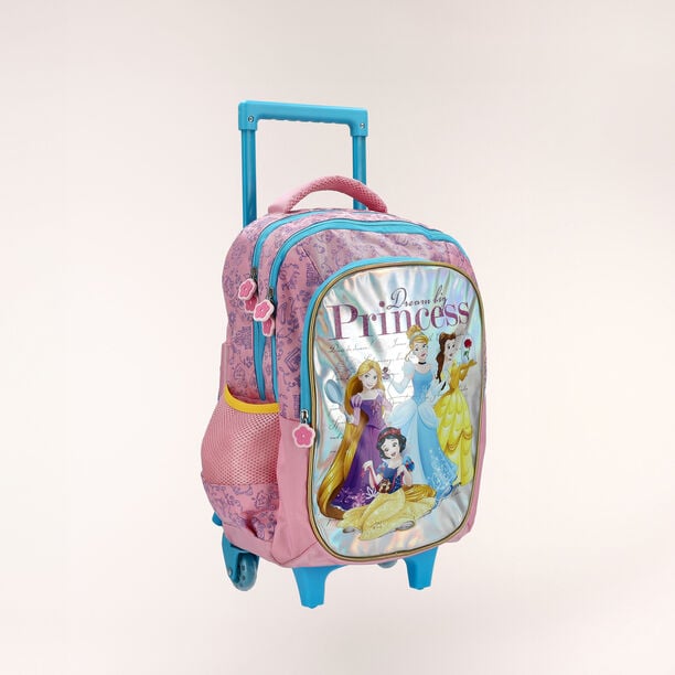 Get ready for back to school with the perfect Disney Princess Rolling backpack from Diseny; designed with attractive prints and colors. It comes in 16 inches, suitable for ages 4 to 8 years. The rolling backpack has 2 exterior side pockets to hold a grip of the water bottles and a front pocket allowing your kids to store school accessories. The adjustable expanding straps guarantee a comfortable fit for your child.