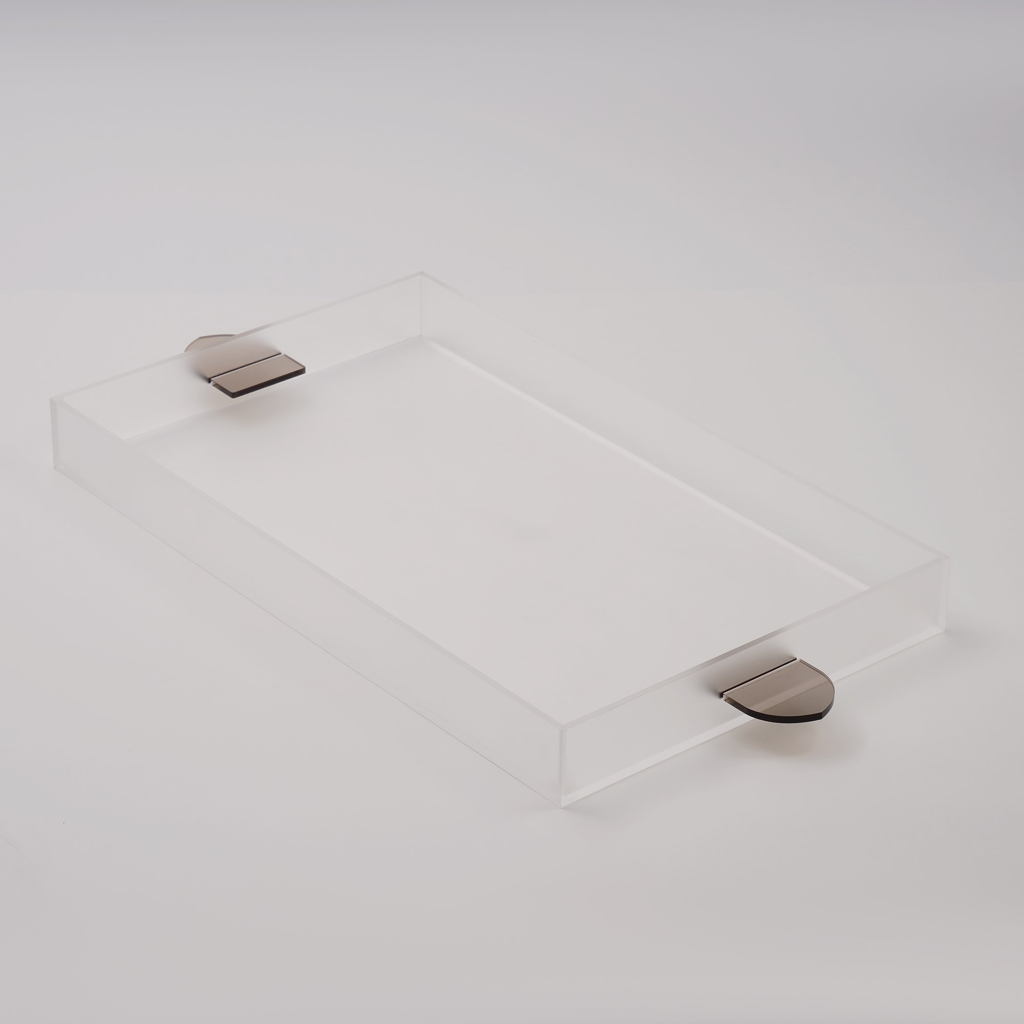 Serve your Ramadan guests with refined elegance using the Dallaty Acrylic Tray from the Qurtuba Collection, designed for elevated hospitality during iftar and suhoor gatherings. Crafted from clear, durable acrylic and finished with a colored handle, it adds a modern touch to Ramadan table décor and Ramadan home accessories. With its generous size of 59.5*30*5 cm, it is ideal for serving coffee, dates, and sweets, making it a stylish Ramadan tray and a practical Ramadan decoration item for welcoming tables.