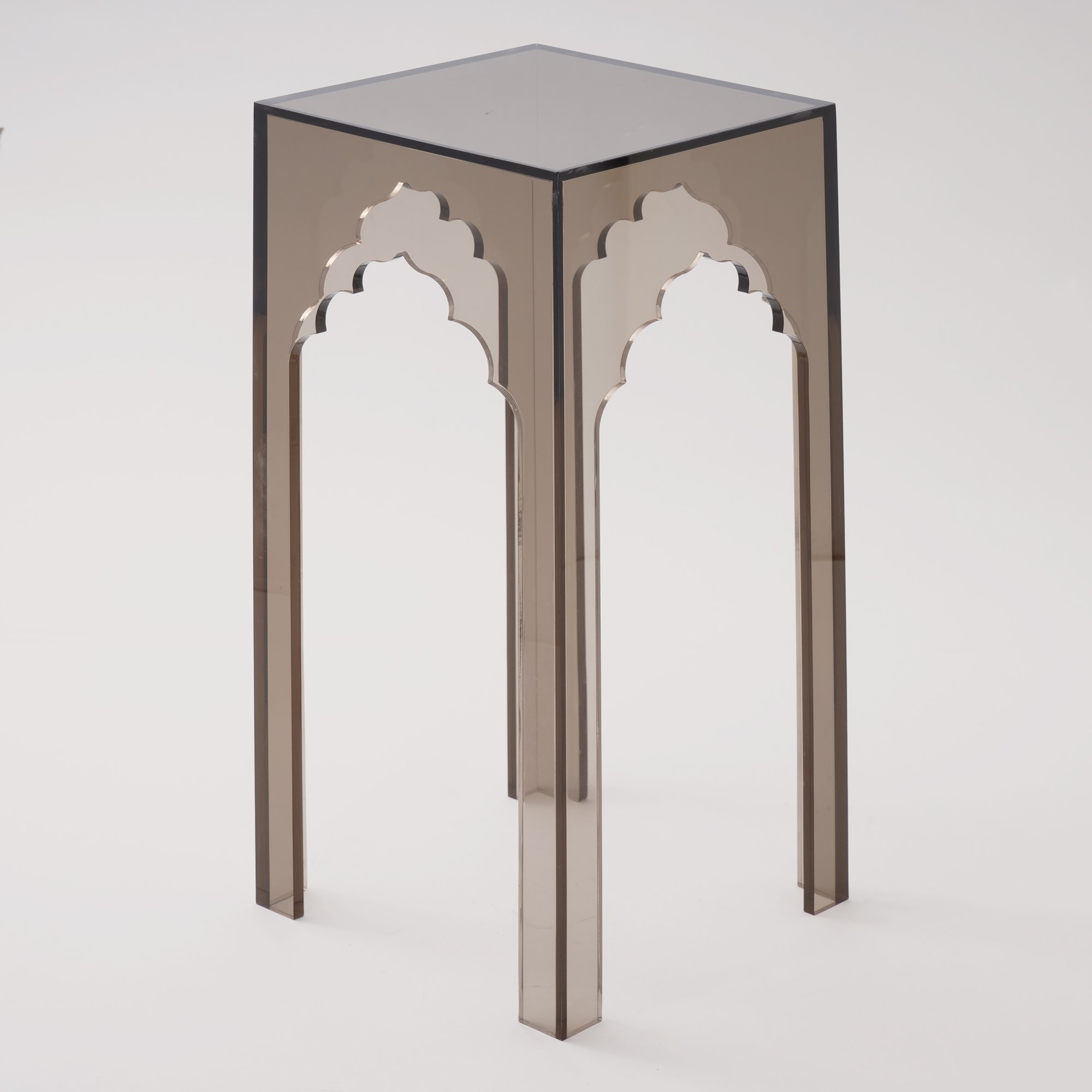 Qurtuba Gateway Acrylic Side Table, Smoked Grey, 22.8*22.8*51 cm