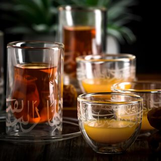 In case you're hosting a bunch of friends or celebrating a special occasion, our range of Arabic coffee and tea sets is truly a must-have for every household. Elevate your daily ritual with our Arabic coffee cups and start your day with a nice positive vibe, or enjoy an idyllic afternoon tea with our Arabic tea cups and saucers & more. Choose from iconic double wall glass sets and porcelain sets from our top brands. For instance, express your unique taste with Zukhroof coffee and tea sets. All Zukhroof sets come with 6 teacups and 6 Arabic coffee cups with saucers. It also includes a sugar bowl that comes with a lid and a spoon. Plus, turn your coffee and tea time into a ceremony with La Mesa tea and coffee sets. With high-quality porcelain, La Mesa sets feature luxurious designs, dainty patterns, and bold colors. It consists of 6 Arabic coffee cups and 6 teacups along with their saucers.